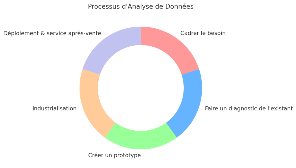 Le succès d’un projet d’analyse de données repose sur une méthodologie bien définie, orientée vers la création de valeur. En suivant ces étapes — cadrage du besoin, diagnostic de l’existant, création de prototype, industrialisation et déploiement —, vous pouvez maximiser l’impact de vos analyses et satisfaire pleinement vos clients.