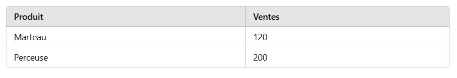 - Résultat : Le tableau affichera uniquement les produits de la catégorie « Bricolage » et leur chiffre de ventes.